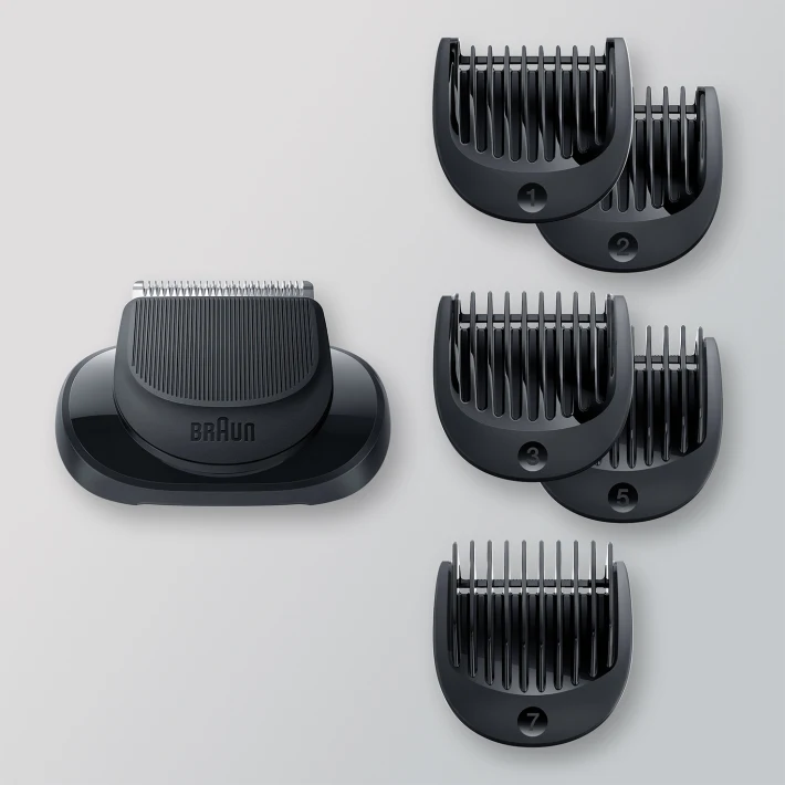 Fem olika längder ger dig perfekt skäggstyling (1, 2, 3, 5 samt 7 mm).